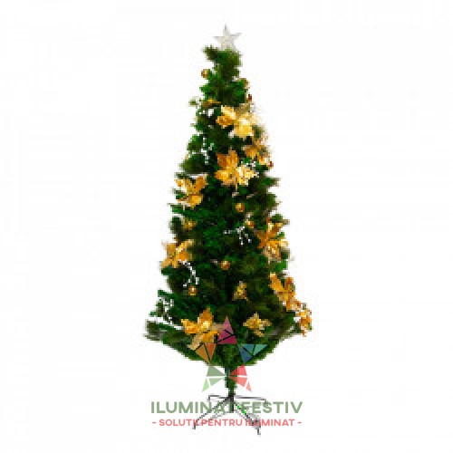 Brad artificial, cu intalatie , fibra optica si decoratiuni, culoare verde,