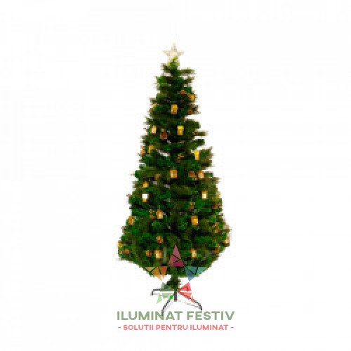 Brad artificial, cu intalatie , fibra optica si decoratiuni, culoare verde,