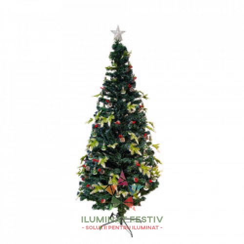 Brad artificial, cu intalatie , fibra optica si decoratiuni, culoare verde, dimensiune 210cm, TP1020-210