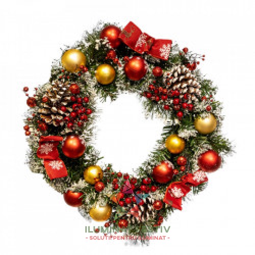 Descriere Coronita artificiala cu decoratiuni, diametru 50 cm, MI-192 ..