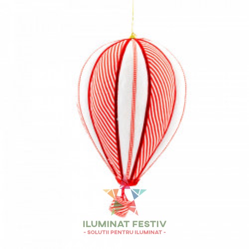 Decoratiune brad in forma de balon cu aer, culoare alb cu rosu, dimensiune: 24x24x41 cm, MI-599