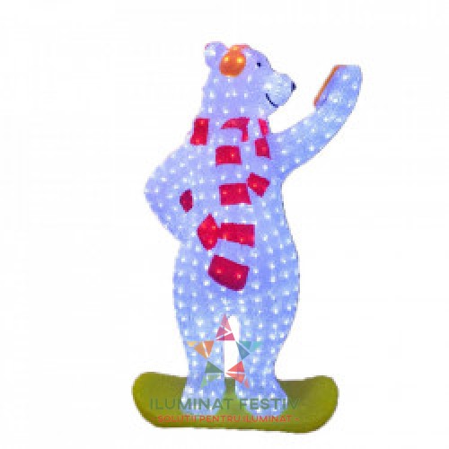Etichete: Decoratiune de esterior cu lumini, Urs Polar Selfie din acril, 228 Led-uri, dimensiune produs 120cm, 8 jocuri de lumini, cablu de alimentare 3m