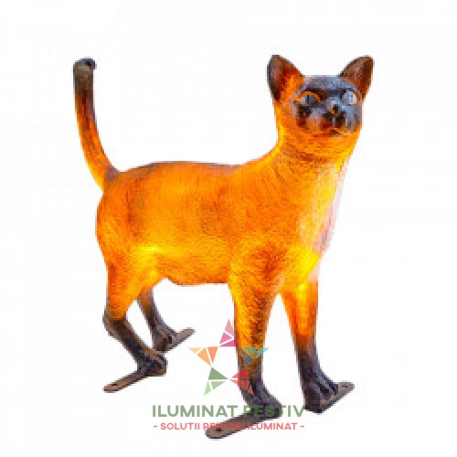 Descriere Decoratiune de exterior 3D Siamese Cat din fibra de sticla, 360 Led- lumina calda dimensiune H: 39 cm, Transformator cu cablu de alimentare : 150cm ..