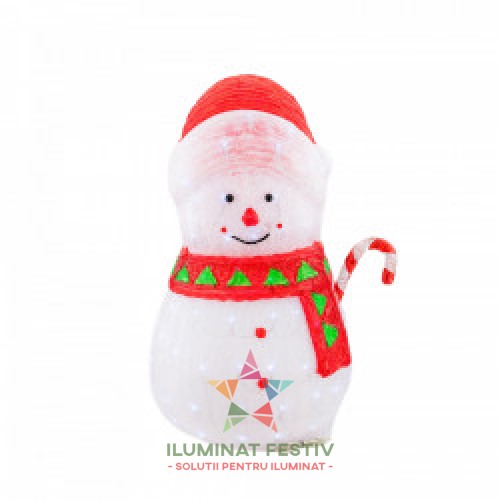 Decoratiune de exterior cu lumini, Om de zapada din acril, 72 Led-uri, dimensiune produs 60cm, 8 jocuri de lumini, cablu de alimentare 3m