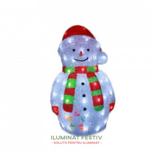 Etichete: Decoratiune de exterior cu lumini, Om de zapada cu fular din acril, 72 Led-uri, dimensiune produs 60cm, 8 jocuri de lumini, cablu de alimentare 3m