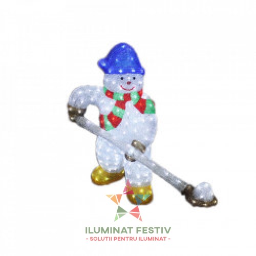 Etichete: Decoratiune de exterior cu lumini, Om de zapada cu lopata din acril, 224 Led-uri, dimensiune produs 80cm, 8 jocuri de lumini, cablu de alimentare 3m