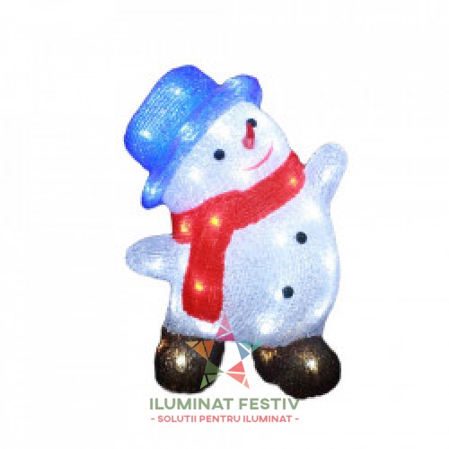 Etichete: Decoratiune de exterior cu lumini, Om de zapada dansator din acril, 50 Led-uri, dimensiune produs 40cm, 8 jocuri de lumini, cablu de alimentare 3m