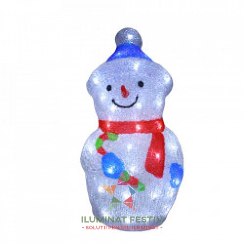 Decoratiune de exterior cu lumini, Om de zapada din acril, 50 Led-uri, dimensiune produs 45cm, 8 jocuri de lumini, cablu de alimentare 3m