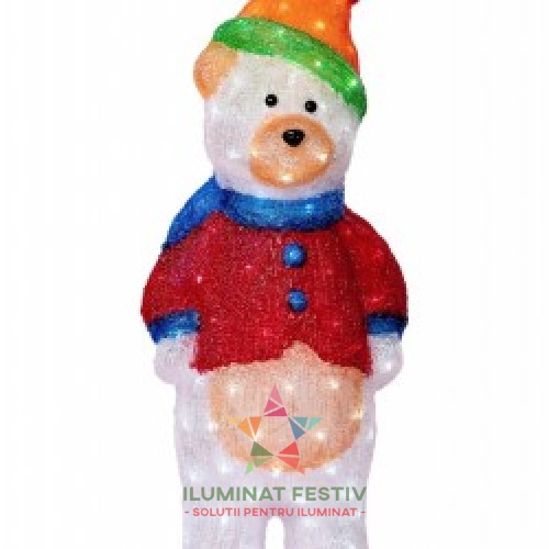 Decoratiune luminoasa de exterior Ursulet, 150 Led-uri , multicolor. Dimensiuni : h 80 cm. Alimentare : cablu de alimentare 3m lungime, transformator GS IP44 cu 8 functii Ambalaj: cutie carton alba,MI-1051