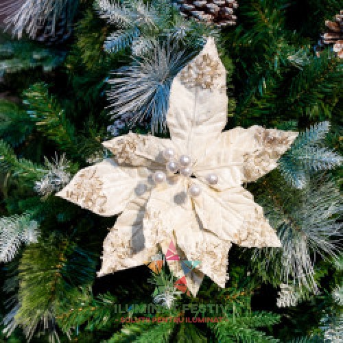 Decoratiune pentru brad in forma de floare, culoare crem, dimensiune 28x40cm, HB-548