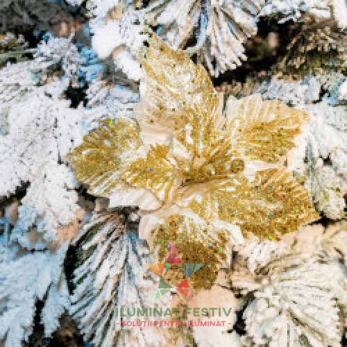 Decoratiune pentru brad in forma de floare, culoare auriu, dimensiune 43 cm, MI-1077