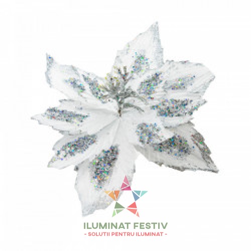 Decoratiune pentru brad in forma de floare, culoare alb, dimensiune 26 cm, MI-1052