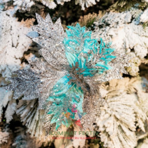 Decoratiune pentru brad in forma de floare, culoare albastru, dimensiune 25x 15 cm, HB-509