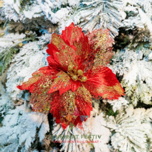 Descriere Decoratiune pentru brad in forma de floare, culoare rosu, dimensiune 26 cm, MI-1067 ..