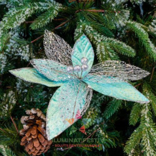 Decoratiune pentru brad in forma de floare, culoare turcoaz, dimensiune 26x 27x15 cm, HB-514