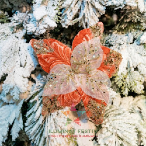 Descriere Decoratiune pentru brad in forma de floare, culoare rosu, dimensiune 28x15 cm, HB-502 ..
