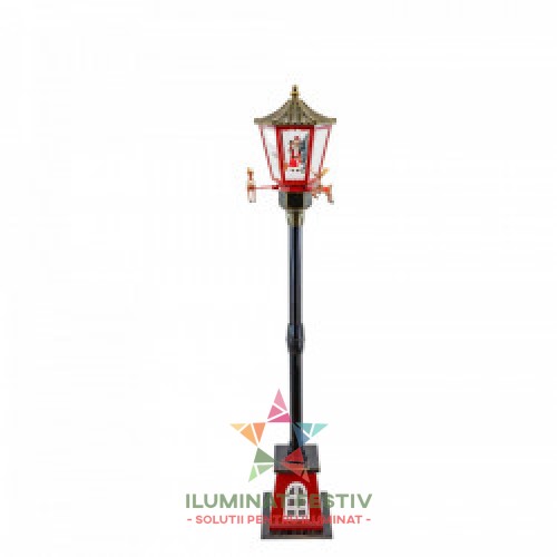 Descriere Felinar muzical stadal, decoratiune Craciun, dimensiune 25.5x17x124cm, culoare rosu, MIF-1218 ..