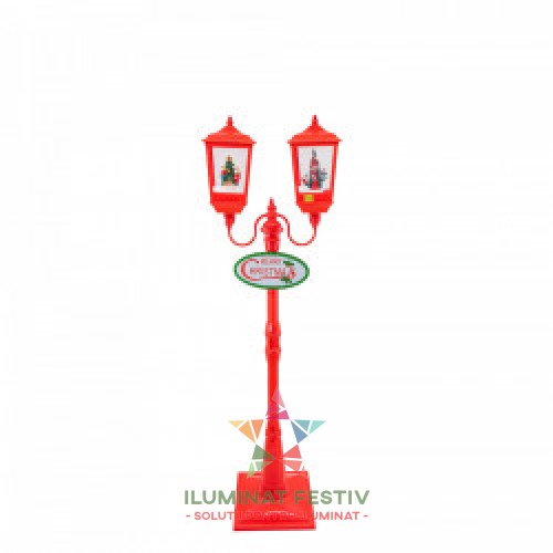 Descriere Felinar muzical stadal, decoratiune Craciun, dimensiune 25.5x17x124cm, culoare rosu, MIF-1218 ..