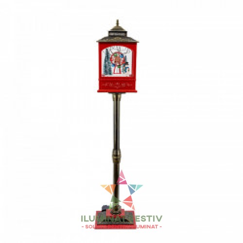 Descriere Felinar muzical stadal, decoratiune Craciun, dimensiune 25.5x17x124cm, culoare rosu, MIF-1218 ..