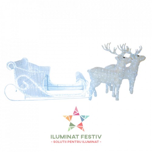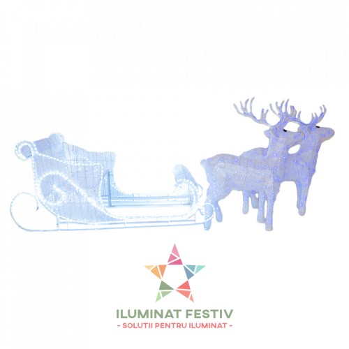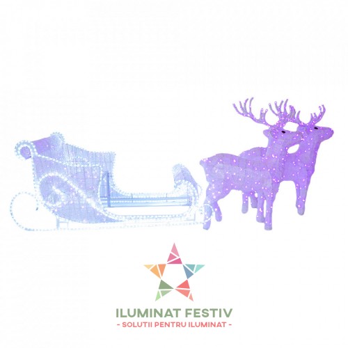 Sanie cu 2 Reni 3D, 100 cm x 500 cm, RGB, BL3004