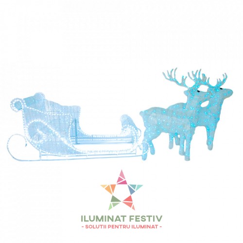 Decoratiune luminoasa de exterior Sanie cu reni,