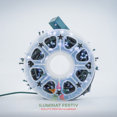 Descriere Leduri: 480 (leduri rotunde - au o intensitate mai mare) lungime: 50 m Lungimea cablului de alimentare: 1,5 m Culoarea cablului: Negru Culoarea ledurilor: alb / albastru Grad pr..