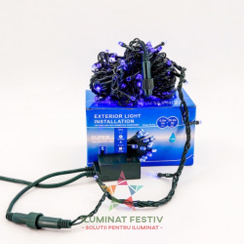 Instalatie Lumini de exterior, fir 100 Led- Albastru 10m, interconectabila