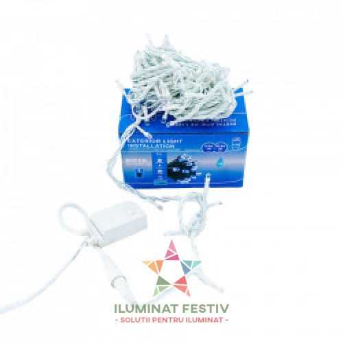 Instalatie Lumini de exterior, fir 100 Led- Lumina Rece 10m, interconectabila, SW-100G-W