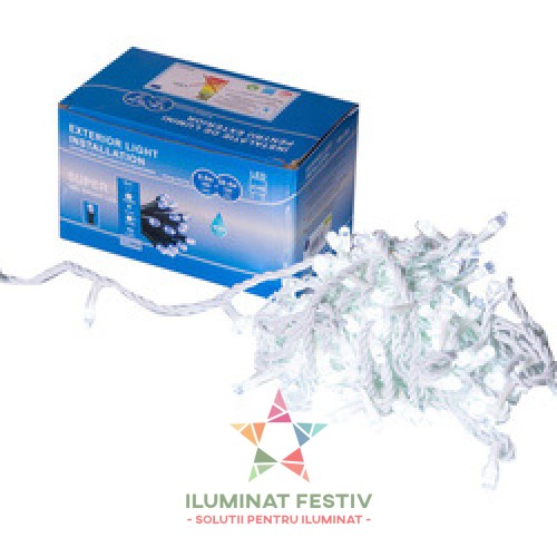 Instalatie Lumini de exterior, fir 100 Led- Lumina Rece 10m, interconectabila