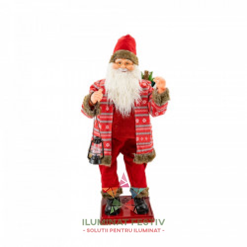 Mos Craciun muzical cu miscare lenta, cuoare rosu, dimensiune 50 cm, cu baterii, HB-1001-50
