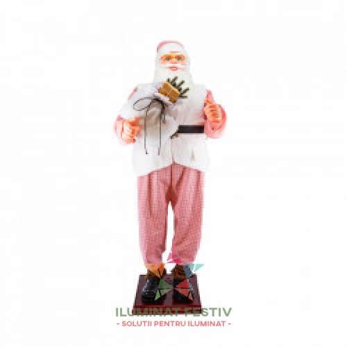 Mos Craciun muzical cu miscare lenta, cuoare roz dimensiune 90 cm, alimentare la priza HB-1006-90