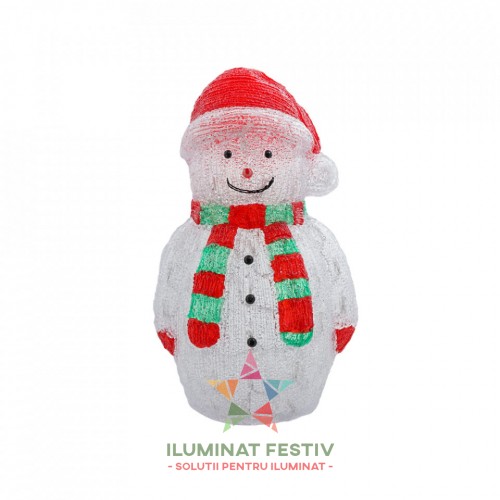 Decoratiune de exterior cu lumini, din acril, Om de Zapada, 96 led-uri lumina rece, 8 jocuri de lumini, HB-204-2023
