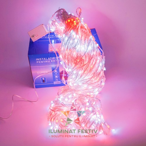 Perdea luminoasa, 4 m x 3 m, Alb Cald cu Rosu, BL1200W-CLD-R1- Leduri: 1200- Lungime X Inaltime: 4 m X 3 m- Culoarea ledurilor: Alb Cald cu Rosu- Culoare cablu : Alb- Grad protectie I..