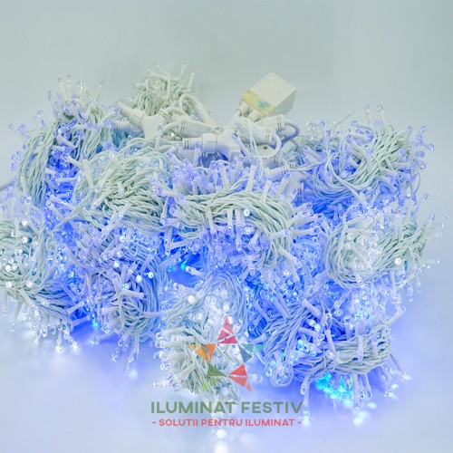 Perdea luminoasa, Franjuri, 5 m, Alb Rece - Albastru, BL360G-WB