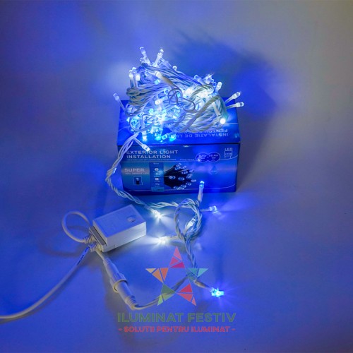 Sir luminos 100 m, Alb - Albastru, BL362WB- Leduri: 800 (leduri rotunde - au o intensitate mai mare)- Lungime: 100 m- Lungimea cablului de alimentare: 1,5 m- Culoarea cablului: Alb- Culoarea ledurilor..