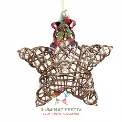 Etichete: Stea din ratan natural si plastic, cu sarma de cupru 25 led-uri lumini albe calde + transformator